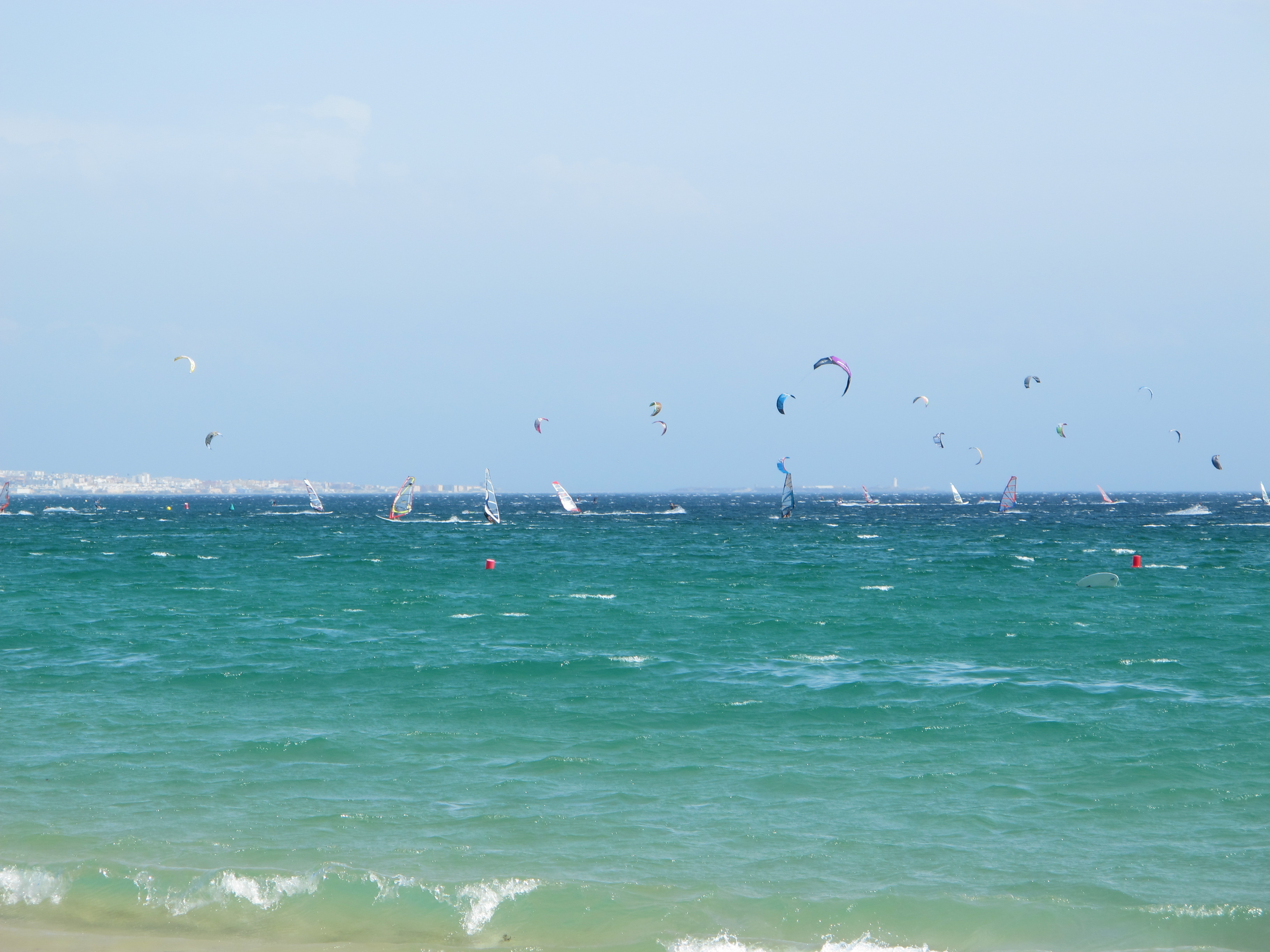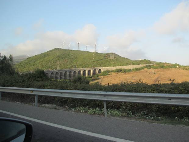 Leaving Gibralar was easy today. Follow signs for the A-7 and head West if you want to get to Tarifa. Along this sun soaked countryside we see dozens and dozens of windmills. The famous winds that hit this coast are now powering the area. The jury is out: I have heard mixed reviews on if they are actually cost effective. In the long run – on an environmental side – it must be. On the short term, in this economy, probably a bit of a financial disaster. Still Spain has a ton of wind power all over the county. You can say what you like about them being eyesores on the hills, I must say I quite like them. It is funny to me that people resist the mills meanwhile, this coastline is dotted with condo complexes – one after another you get either windmills or condos so take your pick: no pun intended… one can’t exist without the other… people need power… period… and the cleaner the power the better.