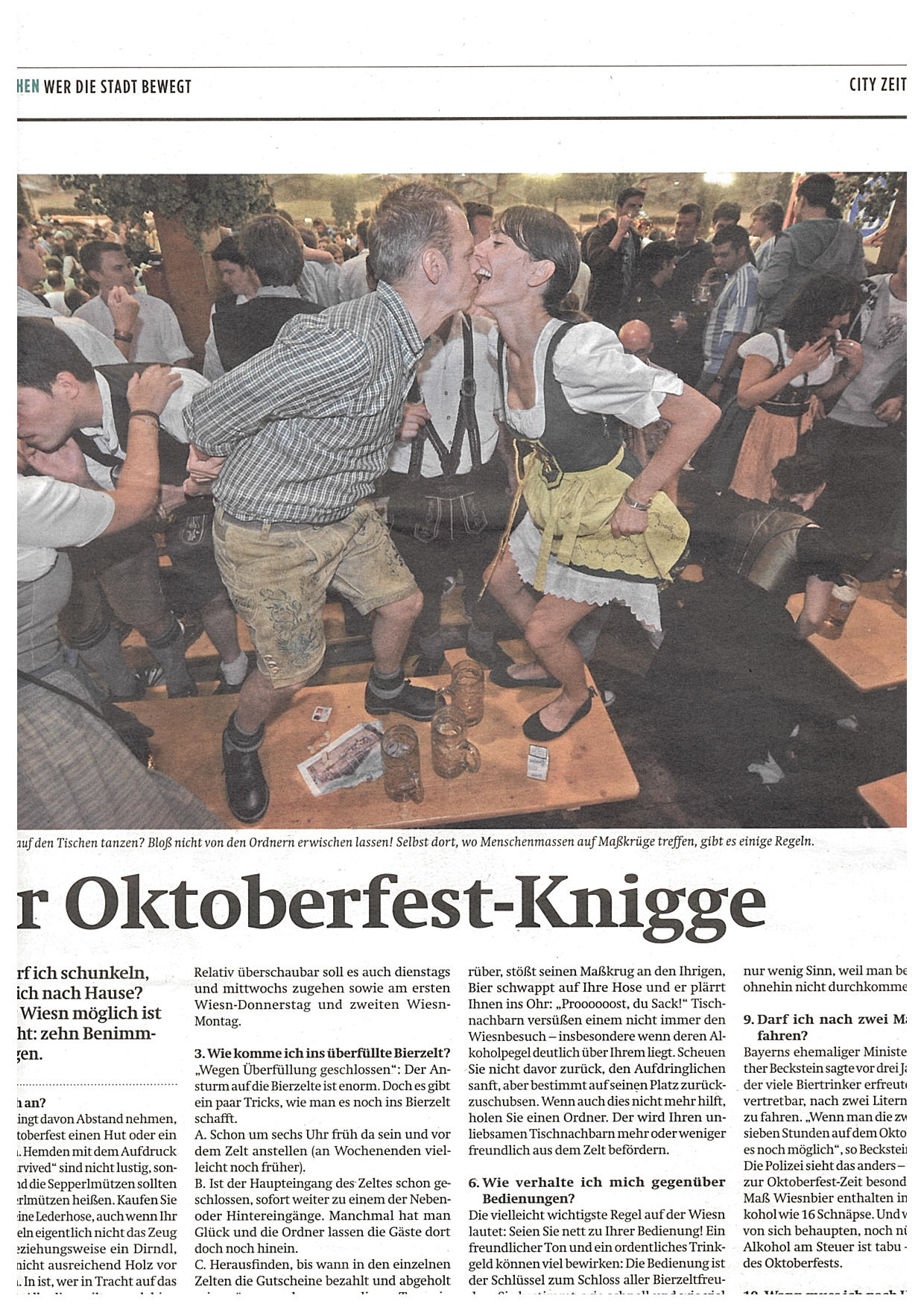 I must admit Munich, Germany is my favorite city. It probably should be Paris or Buduapest or Prague but it isn’t. There is something intoxicating about this Bavarian enclave – it’s the people, the air, the street life that I find makes me feel good. The city center is beautiful with its shops, restaurants, museums, parks, churches, open markets and beer gardens. I took a walk through town the day before the first day of Octoberfest and it was busy as ever. Locals and visitors are wearing their “tracht” which is a term called for the traditional dress of lederhosen and dirndls. For the next 16 days people will be rocking out their best tracht: they will wear it to work, to bars, to restaurants and of course to the festival. It is not unusual to see people walking around in their tracht on even if they are not attending the festival that day.