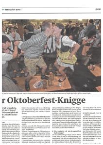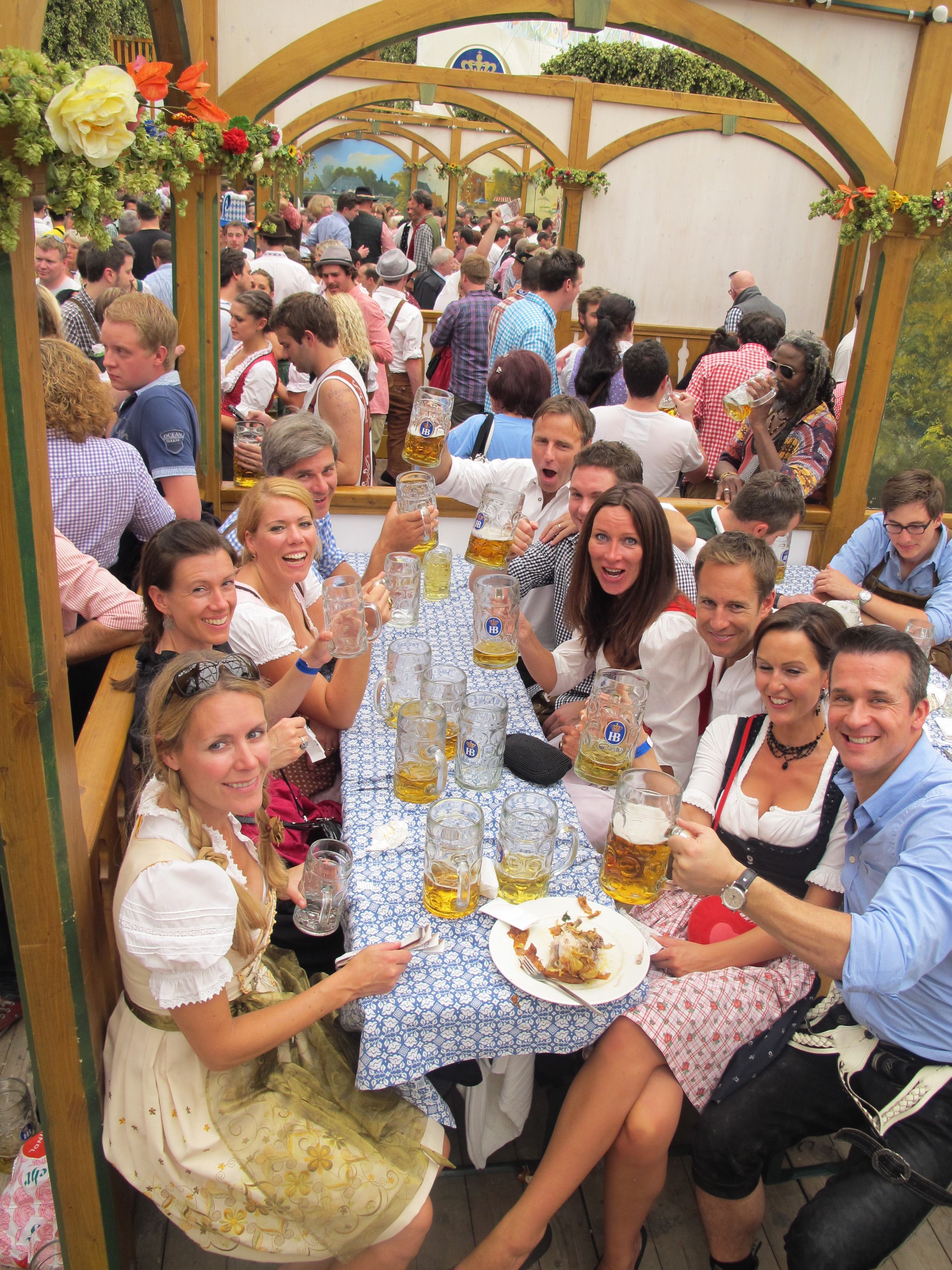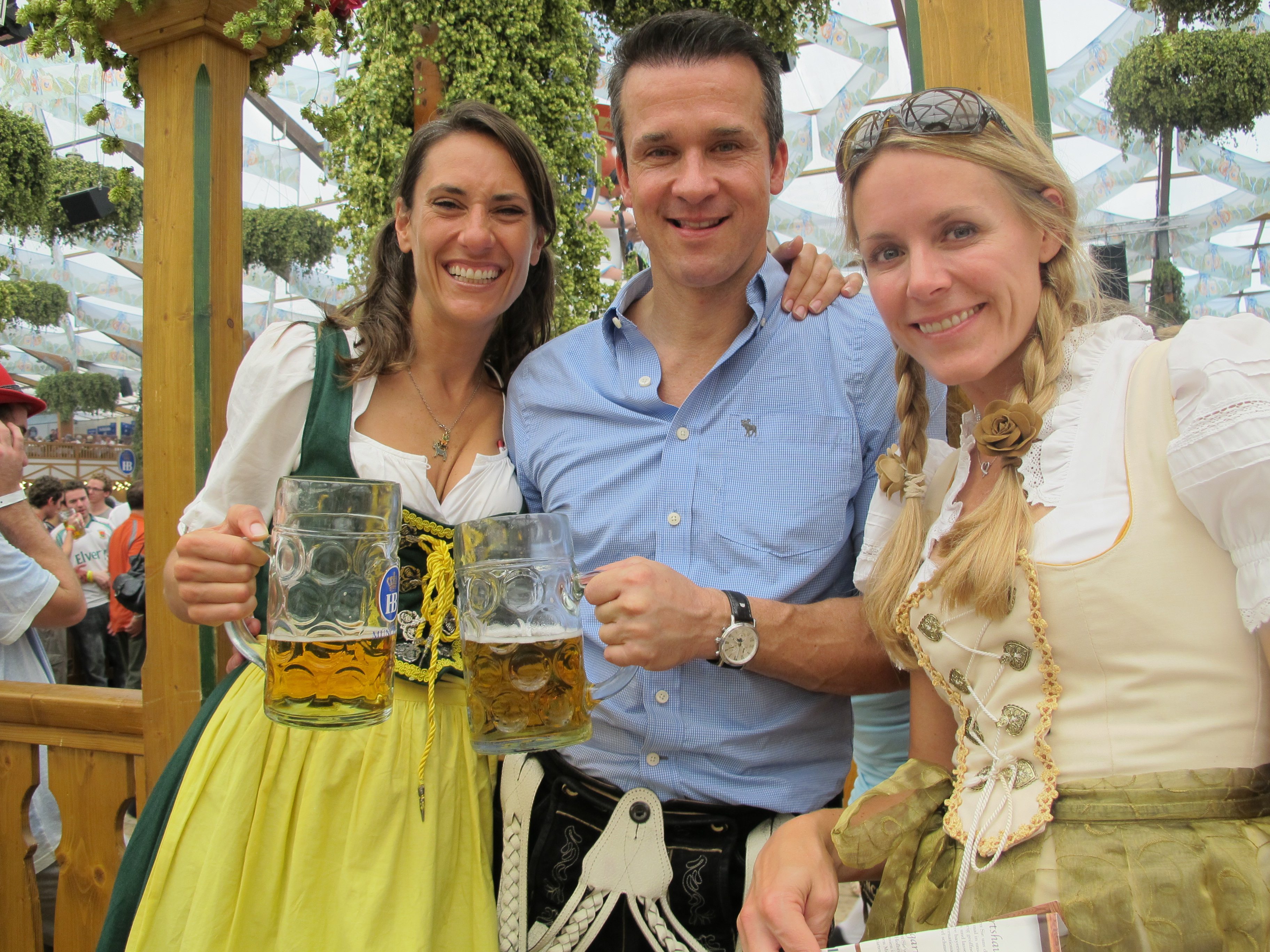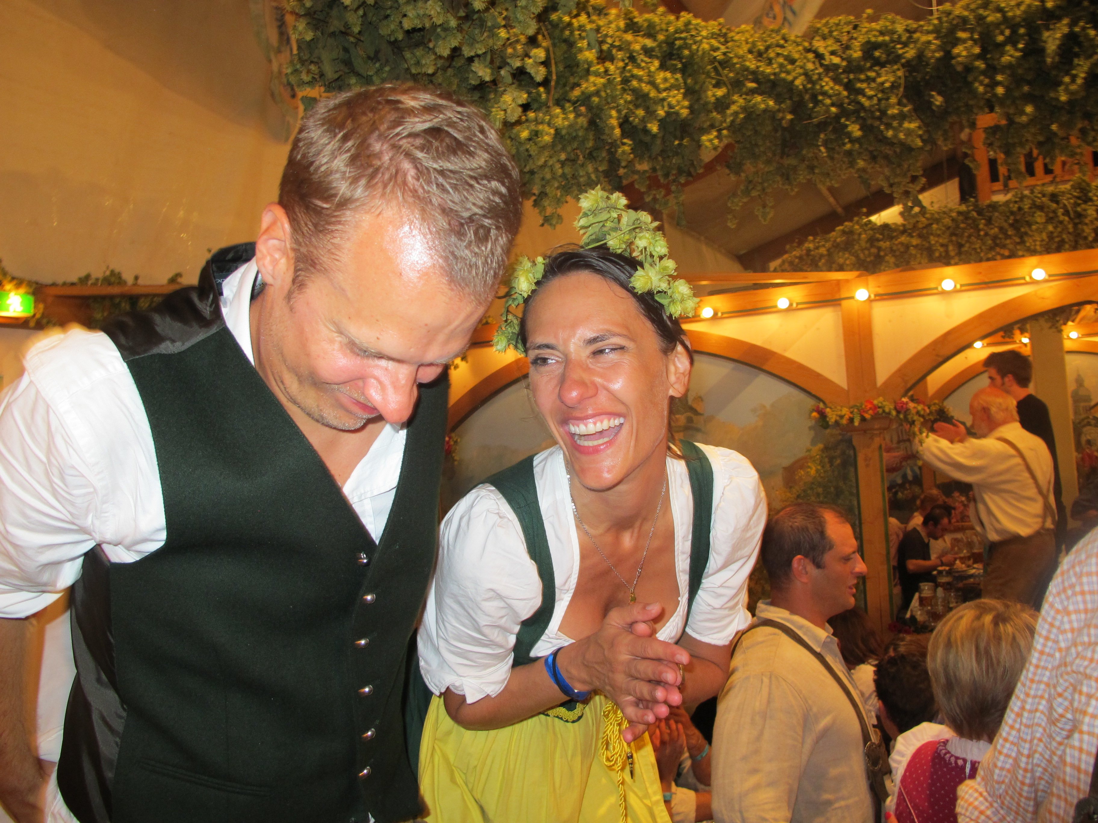 There is no real way to describe what happens next… but it is a marathon of drinking beer after beer, singing to oldies like “sweet caroline” and “if you’ll be my girl” and people standing on benches literally getting drunk. It is that simple. A day off from the world if you will – a total escape. If you question for a moment the goodness in people, come to a tent and just watch the people in it. The Festival is surprisingly safe and if you look at the numbers, there is much more good happening here than bad. Sure – late in the night there are some ugly scenes, but just a few… Only the Germans could pull a festival off like this one. It is a well oiled machine and it keeps going and going and going… No one parties like the Germans…. I have said it before and I will say it again. The Germans are Ze’ Best to party with! In addition a German is the best friend you can ever have. Daniel and Patricia are included in the picture above, Daniel has been a friend for 18 years his wife for 6… they are family to me and I am always grateful for their friendship and hospitality! They have invited me to Octoberfest they are the reason I am here. Below is a friend Hendrick who I met last year at the Octoberfest. He and I ended up dancing on the tables which is forbidden by the way and a picture was snapped! It ended up making 3 of the largest newspapers in southern Germany. Quite an honor! Hendrick and I met for Round 2 this year! We had a blast!