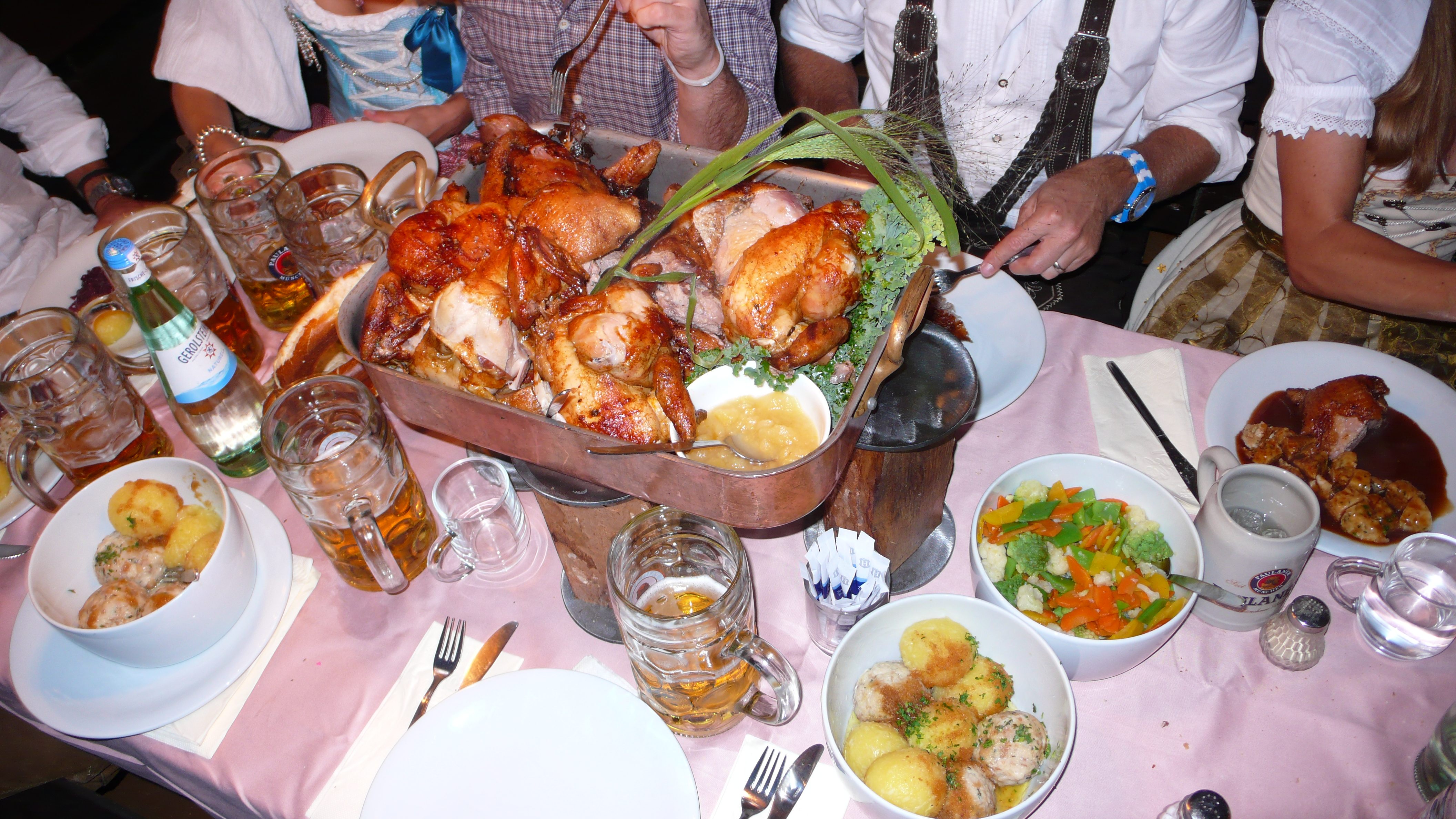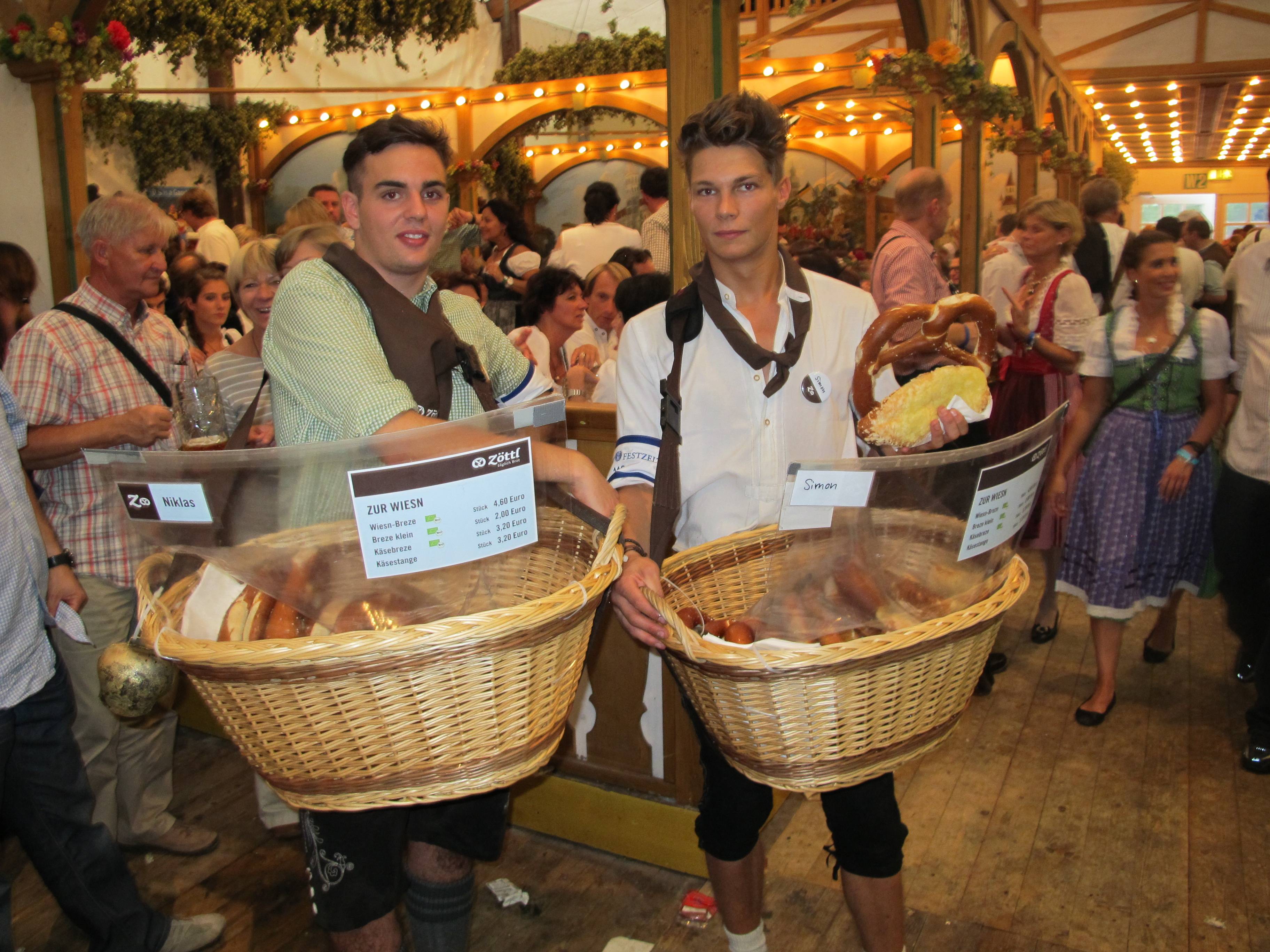 Each tent has its own security team that tames drunken festival attendants when necessary. They look like marines and if there is some misbehaving happening, it is usually cleaned up in minutes. The tents can handle thousands of people where that drink the local beer and eat the local fare. The food you find here is typical of southern german cuisine.