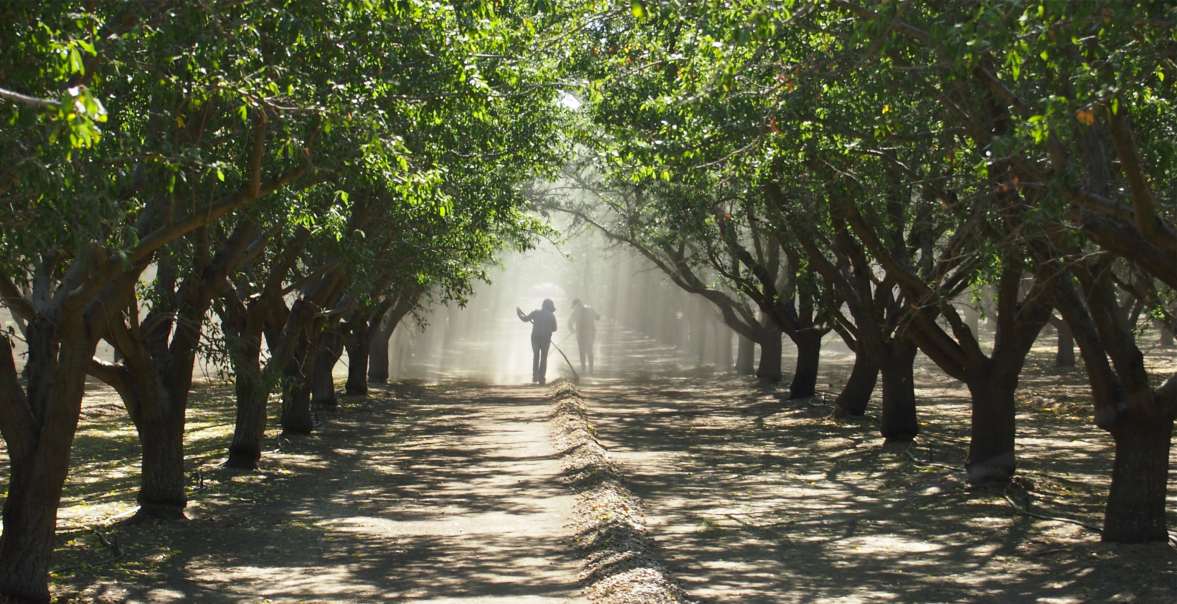 Dust is a problem here. When land is turned over to dirt… you can’t help but have dust. Air quality is not that great. Between pesticides and dust I am told that people have a higher rate of cancer in the valley. Sitting in a tranquil almond grove you feel as close to heaven as ever – until you get back into your car and see layer of dust and dirt and think, what is sitting in my lungs!
