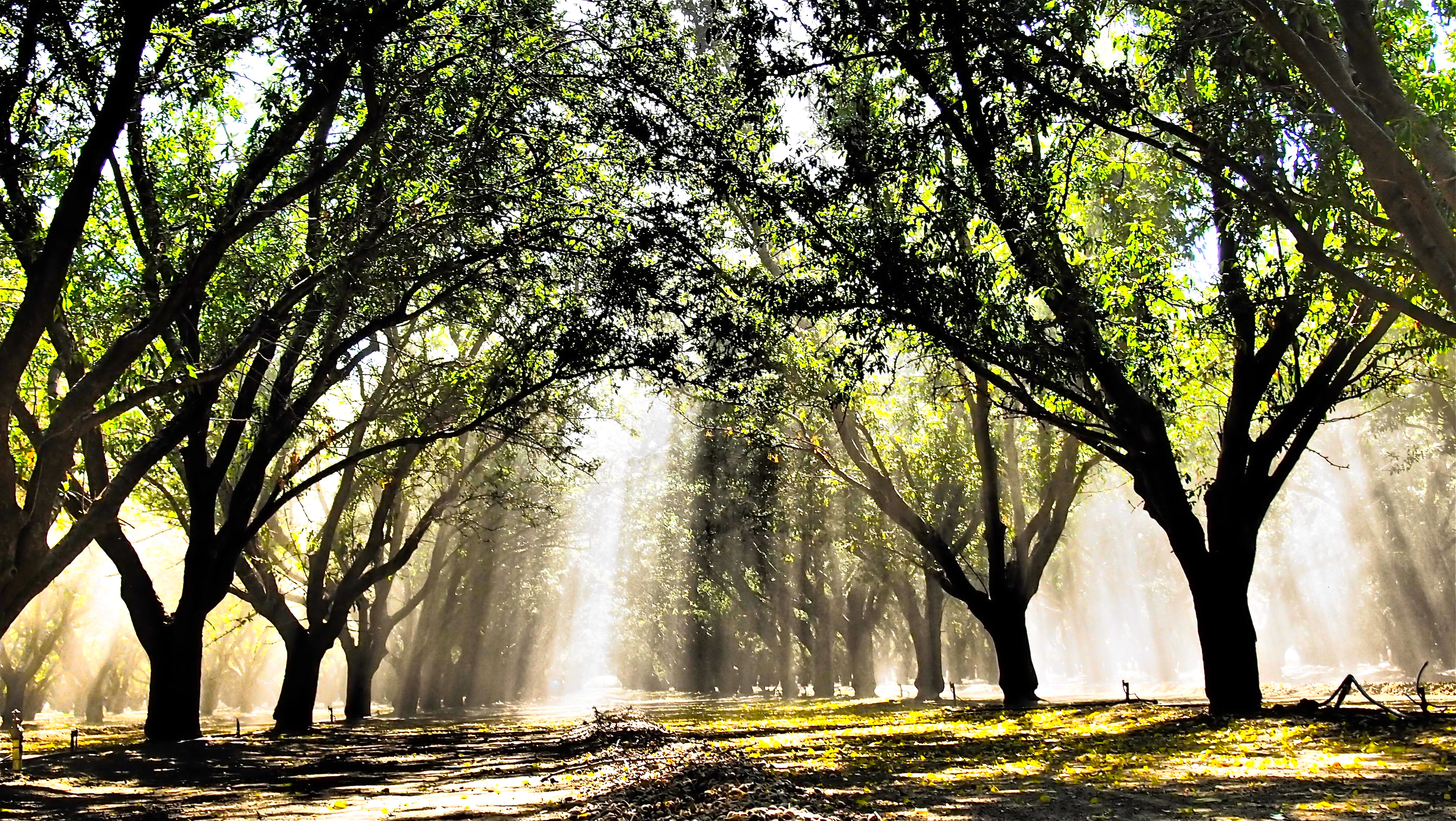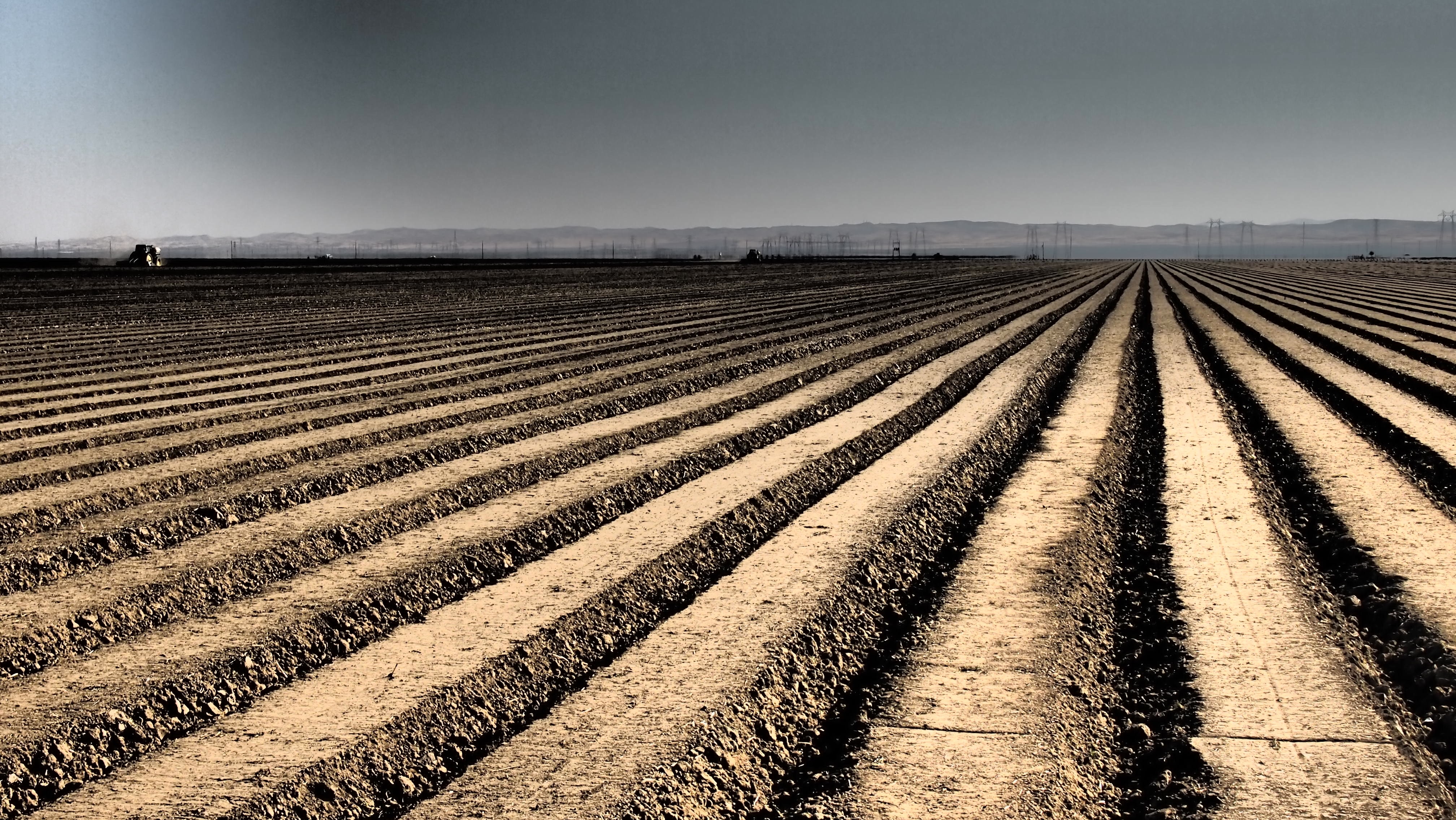 Did I mention cloudless? Did I mention desert? The central valley of California has been farmed for over 2 centuries and it does it on the dependency of water from the north because guess what: an annual rainfall of 5 inches to 30 inches is not enough to water these crops… A series of canals and pipes bring water to these plots from northern Califonia, and miles of hoses bring it to the trees via drip.