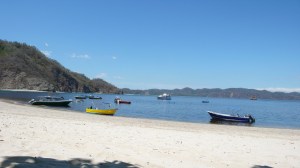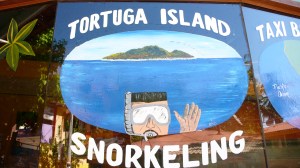 Zuma Tours has daily snorkeling trips to the Tortuga Islands. The islands are about 1 hour away from the town of Montezuma and you board the small motor boat from the beach just at town. The excursion takes all day and even included a few beers, a delicious fish lunch and 2 snorkeling trips around the area. There were a few boats launching actually, some for snorkeling, others for scuba and a transport vessel which was slightly larger than our boat taking tourist to the mainland. The roller suitcases lined the beach as large plastic garbage bags were divied out to put the luggage into. I thought since you are boarding the boat by beach, what a good idea that was – in case the luggage slipped out of your hand and fell into the sea. I realize however, it was not for that. Our little bot chugged through the 6 foot seas away from land and along the coastline and within the first 4 minutes, everyone and everything got wet. That is what the garbage bags were for.
