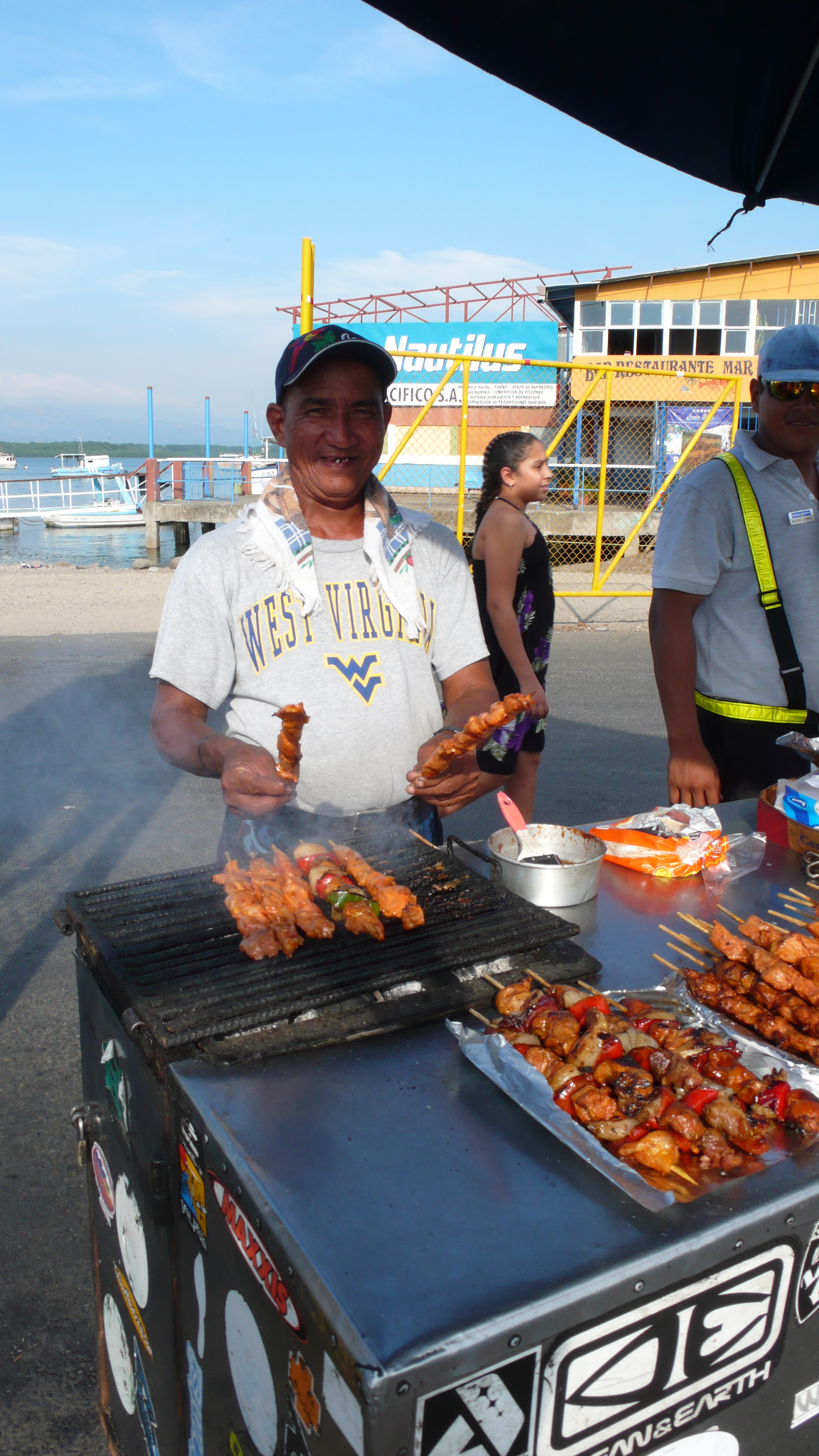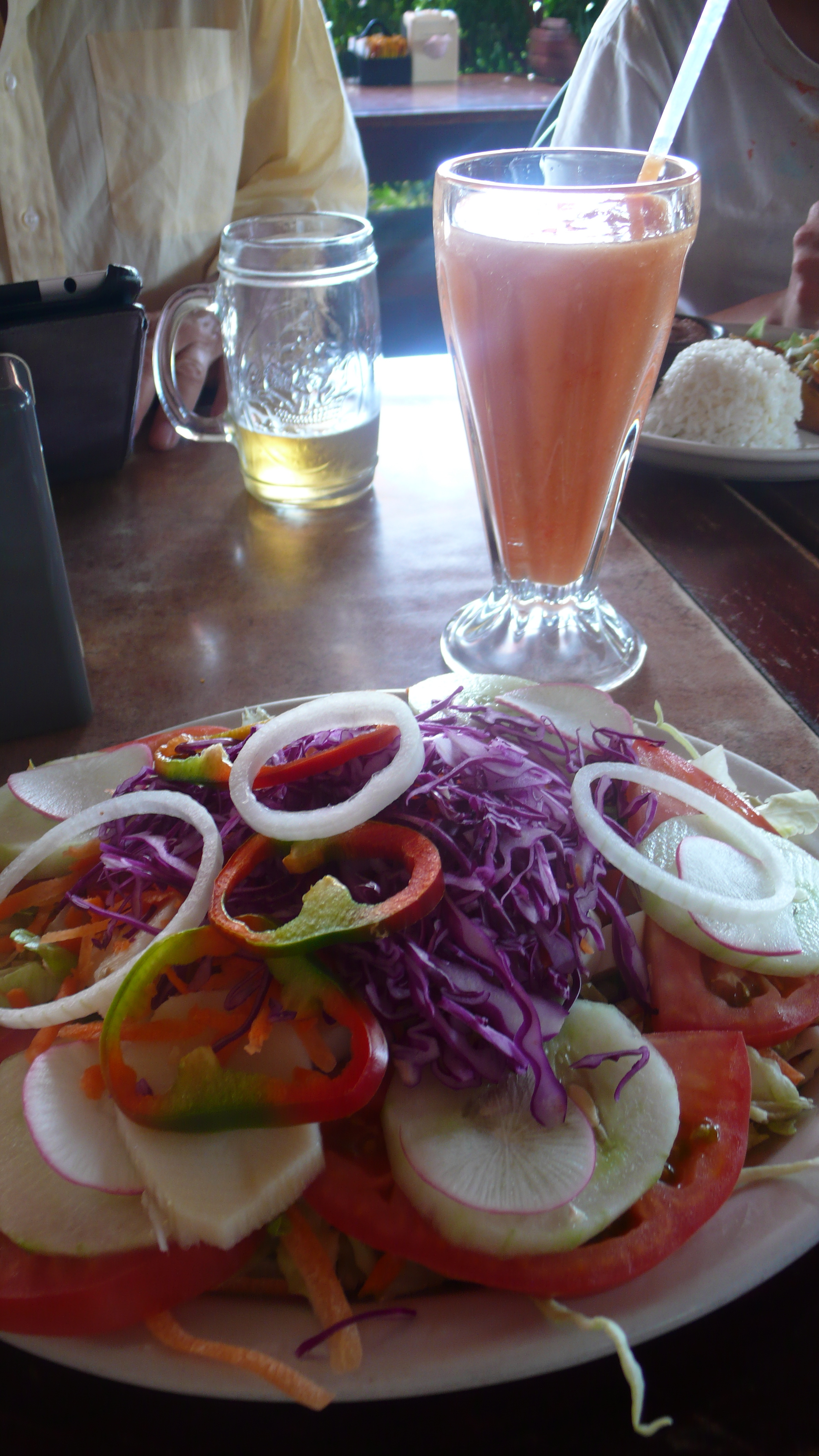 On our way out of the car rental place we find the best local joint to have lunch! An so the Vacation Begins! We order a local beer, drink a local juice of guanabana and papaya and devour sweet plantains, rice and beans and heart of palm salad – that is a veggie delight! – If you are with a carnivore – well then – the rotisserie chicken is a must cooked in a brick oven with some kind of special wood. Poor chickies I can’t stand the sight of cooking whole bodied animals on a stick but I am told by the others that the chicken are delicious.