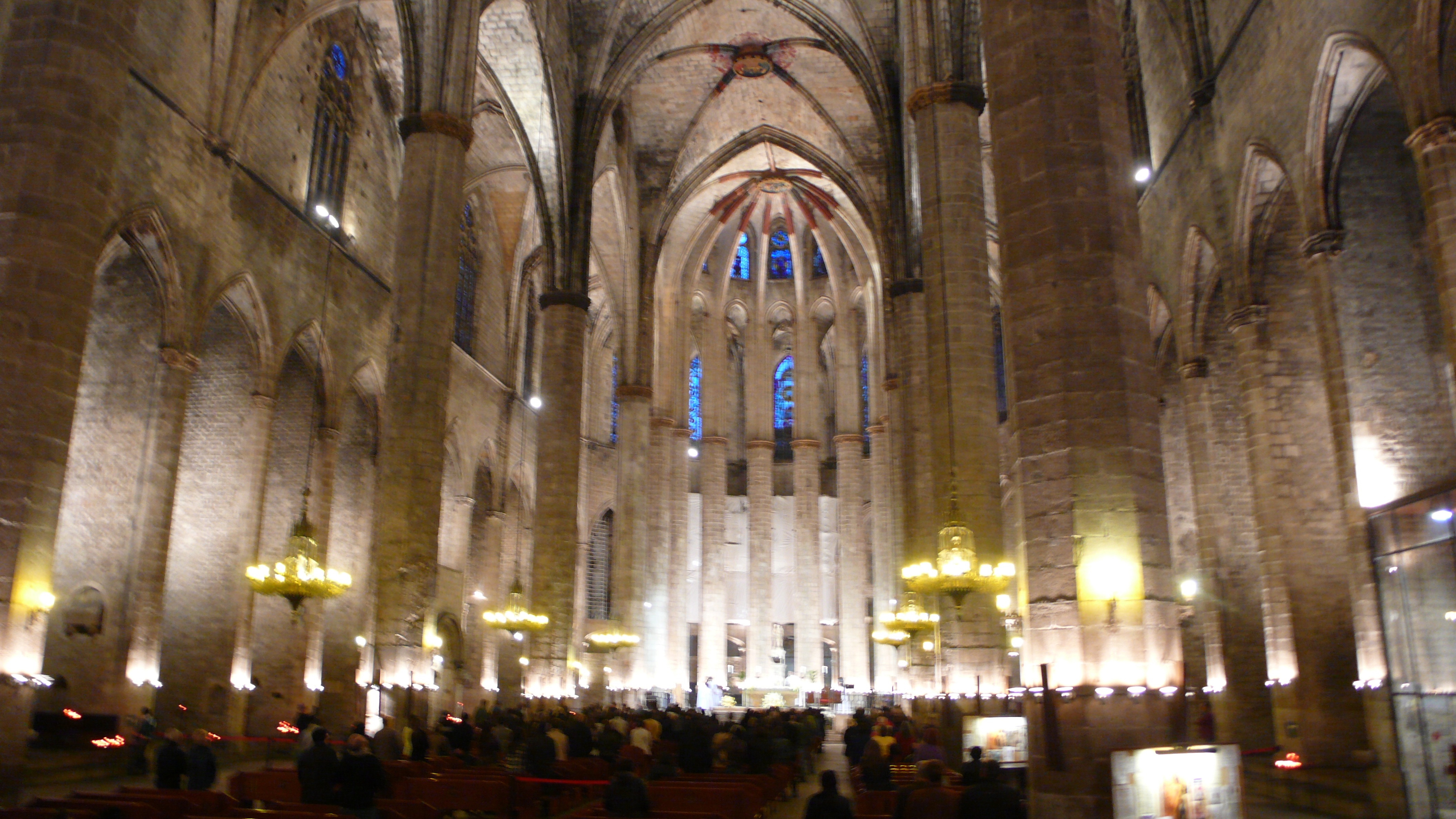 The sun set late! 8pm was dusk! We start to get hungry and Manuel knows exactly where we are going to go for dinner. Just before though, we stop into the Basilica de Santa Maria del la Mar. Here we sit and watch the Good Thursday Mass that is taking place, we leave because we can’t understand a word! The mass is in Catalan! I’ll get to that a little later. Still we soak in the scene and it is beautiful.