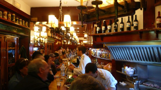 Tapas is a way of life. Just like NY delis, there is a tapas place on every corner in Barcelona. Funny enough, they don’t take up much space and are usually long narrow bars where you stop in for either 5 minutes or 5 hours depending on what you want. Vaso De Oro as been around for a while and it is BUSY! In general – Tapas is usually served by men and many of the waiters will even cook some of the dishes behind the bar which makes for a really loud and cozy environment. They are actually called Cerveceria’s which literally means Beer Joint and there are plenty of cold beers on tap.