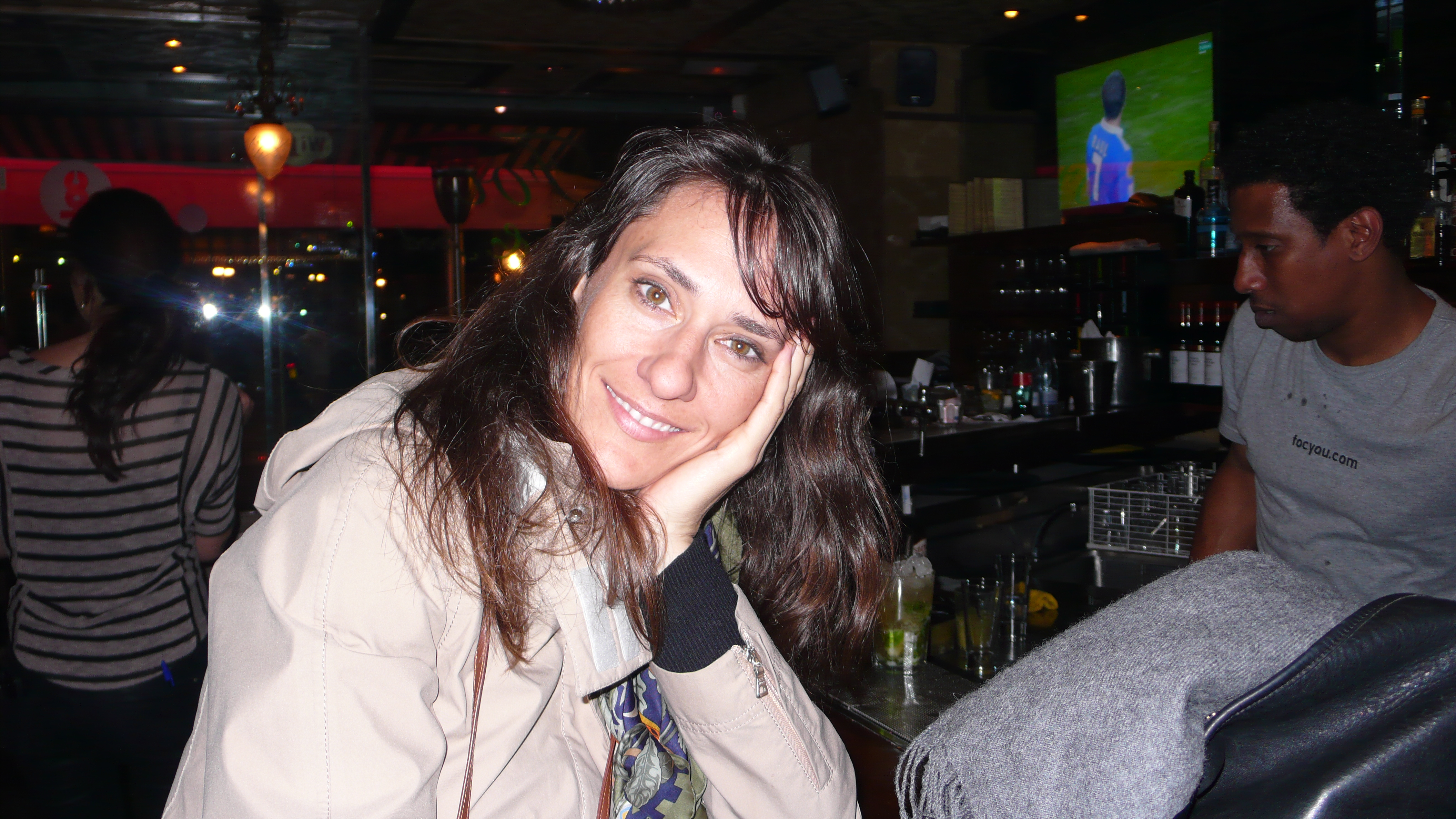 Our final stop is Cafe Foc. Yes FOC. and it is pronounced “Fuk”. The mix here is an unusual one. Many locals and lots of Boaters. The weather is cool and it is not the season for sailing or boating, still the marina attracts all sorts and many of them are here tonight. The irish coffees are divine and we meet a few people behind the bar and at the bar. An 11 year old blonde girl sits at the bar and hassles the waiter as she watches him make mojito after mojito. I realize that kids are not even allowed to sit at bars in the US and this is what makes Europe so different I also wonder if it is so good for a kid to learn how to make mixed drinks so early. Isabelle immediatley starts talking to me too while she pulls out a piece of paper from her pocket that literally says “If I am lost please call this number.” The paper is written in English and Spanish and I learn the girl lives in the Canary Islands with her mom – who is sitting outside. I tell her to try smell the mint that they are making the mojitos with and she is shocked at the smell. “Can I show my mother?” as she runs out and shoves a big sprig of mint in her mothers face. She switches from English to Spanish on a dime as she tells me of kids pulling her hair in school because she is platinum blond. At this point I think she deserves the chocolate egg I bought at Mauri, so I give it to her and she devours it. The I realize she just took candy from a stranger! I tell her to go find her monther and I decide to finally listen in on Manuel’s conversation which is actually with an adult. Meet Angel Pascal who has an enormous beer and plate of ham in front of him. I wonder how he is even going to eat all of it! He is a food critic and gives us a list of places to check out for food. We only have 3 meals left in Barcelona if you include breakfast and I write a few down. He gives us the low down on real estate and the gossips of the city which he says, even though there is a recession the market has risen! Barcelona is HOT!