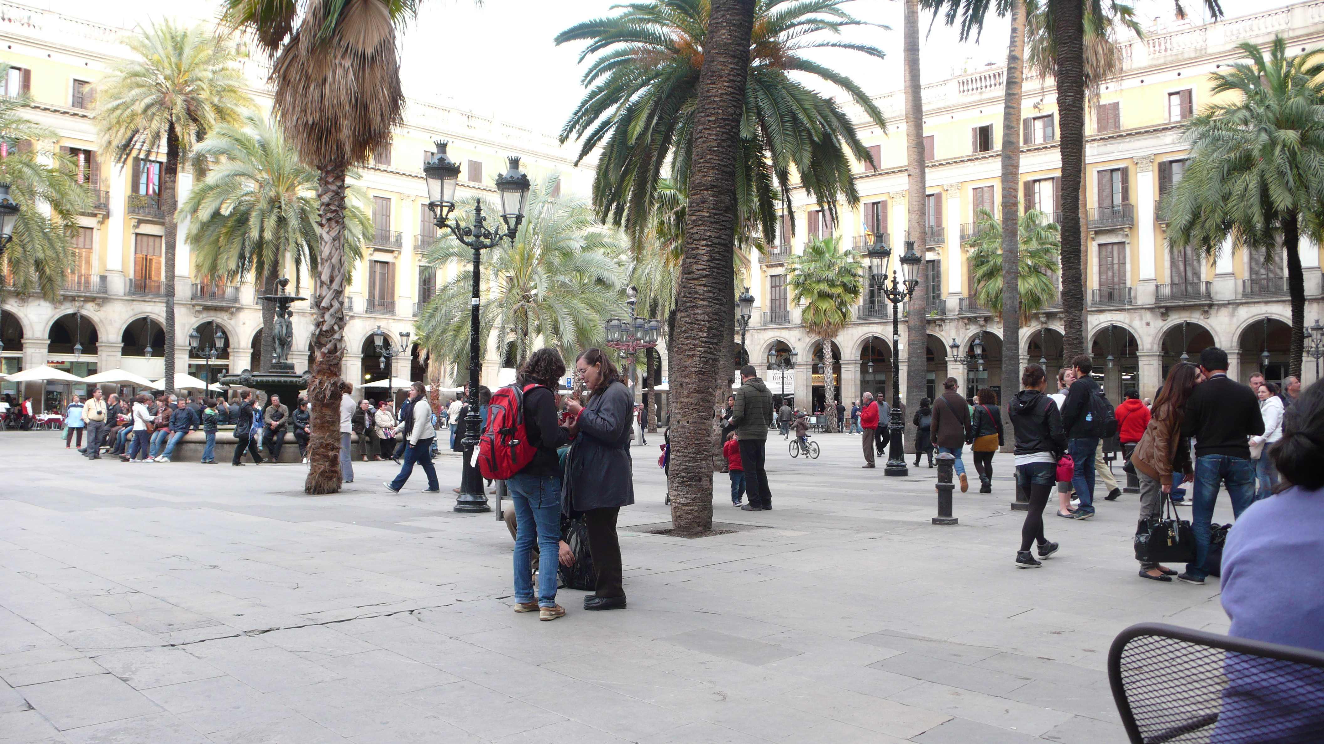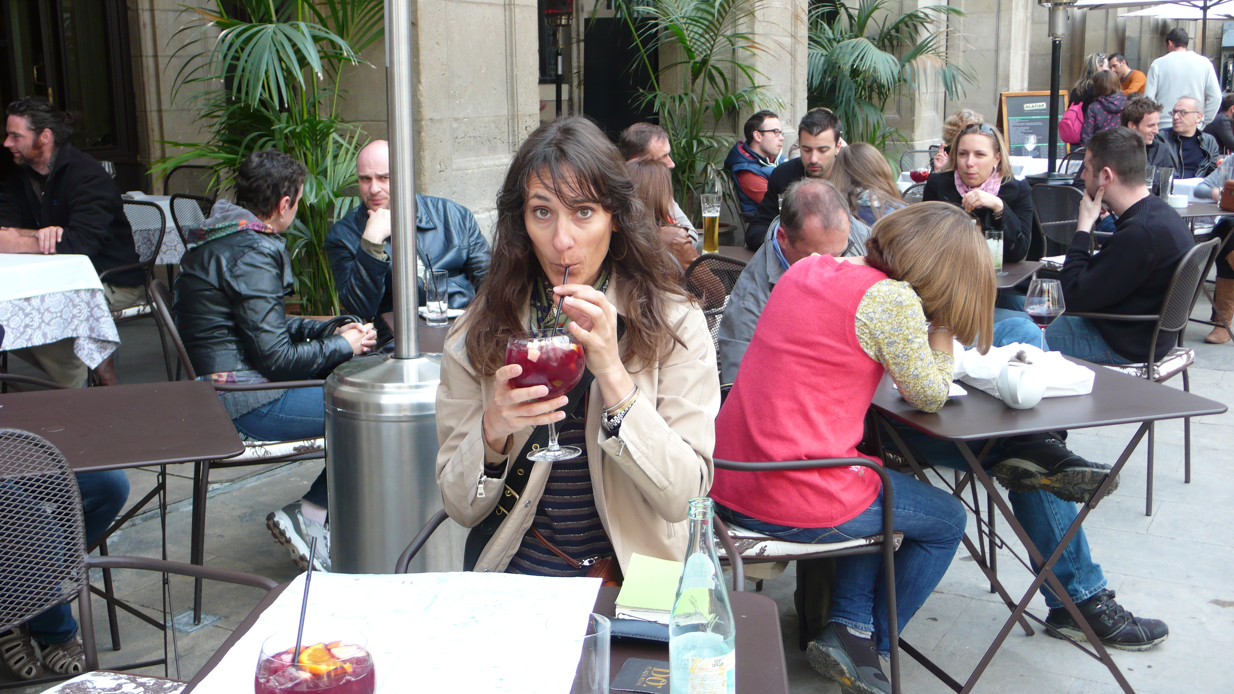 There were a bunch of these happening around town, after the procession passed we decide with the little time we had left to stop chasing the Virigin and find our other religion! HA HA that is drinking good Sangria! We did so at the famous Placa Reial! This is a favorite spot amongst everyone! We found a seat at DO and ordered 2 sangrias stat! As the world walks by we sit and relax and soak in the last of what day light has to offer. The sangria is delicious and the glass is big enough to dive into. At this point you look around and think. LIFE IS PRETTY GOOD.