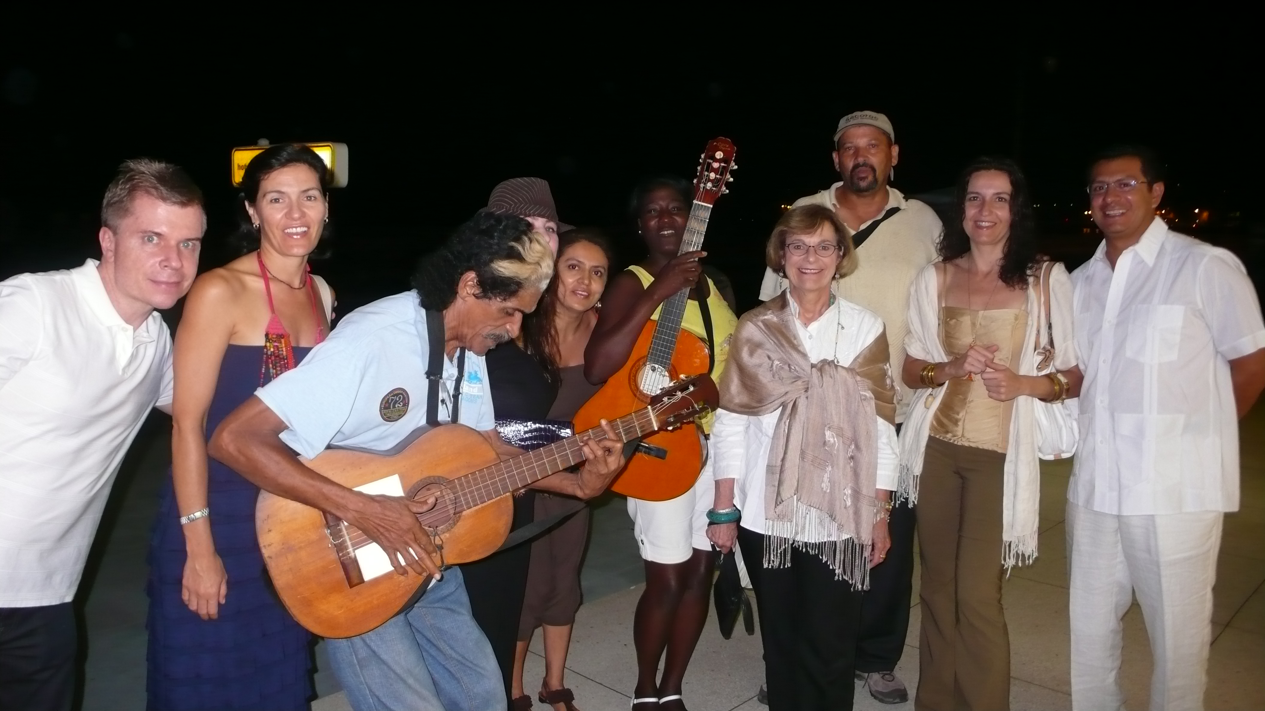 Before leaving for Cuba, I thought, well, they must need soap toilet paper, shampoo and creme. In addition, I figured candy would not hurt so i brought about 200 pieces of candy as well. Thank god for cleaning out my closet – we ran up to the room, grabbed the guitar strings and I made a care package of good for the girl. Soap, Shampoo, Q tips, Perfume, and whatever else I brought. I think I even brought a roll of TOILET paper! When we brought it back down to them, the lead man made a speech. He thanked up for the strings and the woman thanked us for the goods. They serenaded Sandra for a few minutes for her birthday before they went on their way. We felt so good about what we had done! I was so happy!!!