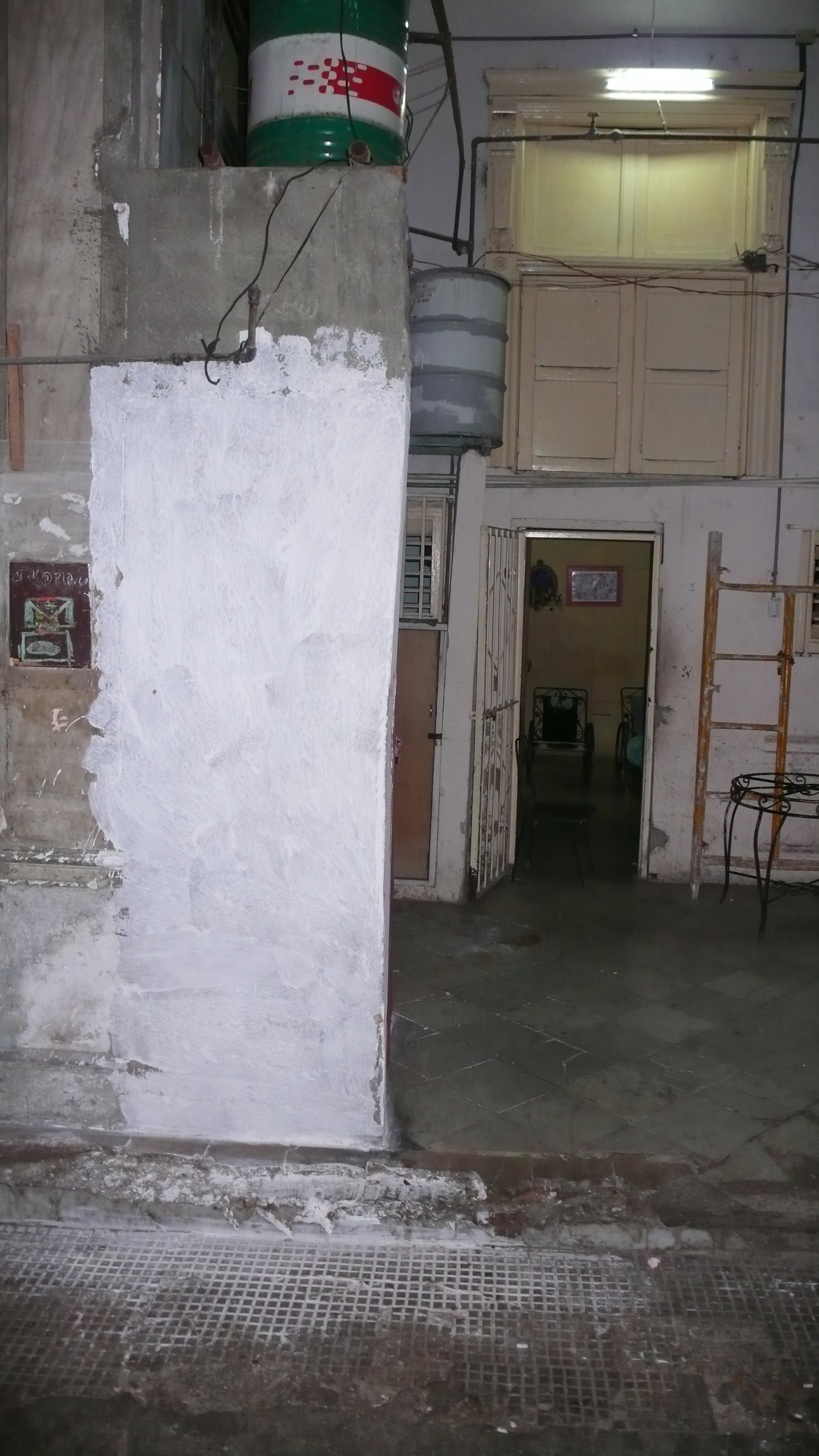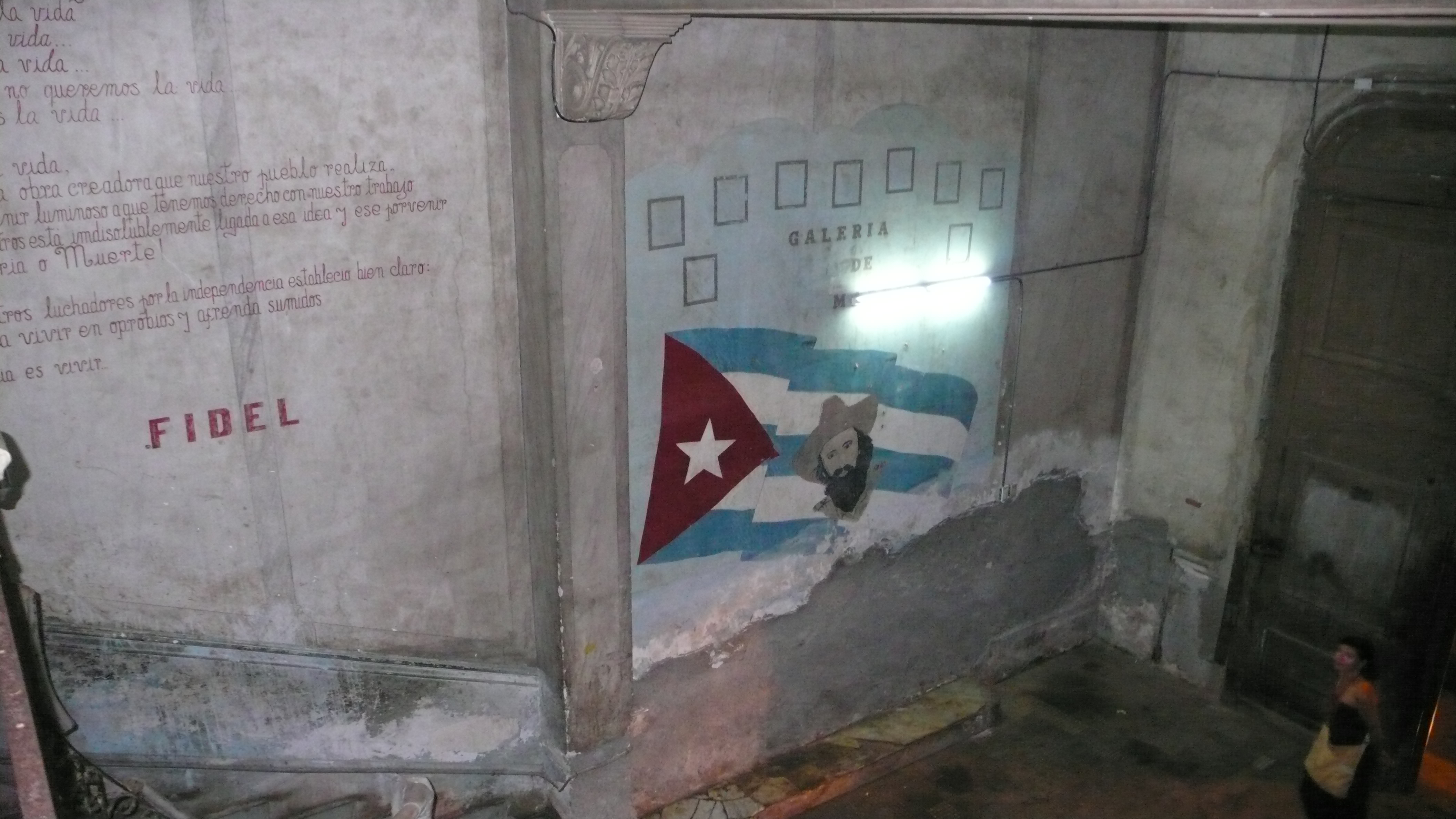 We parted ways, and I find it strange that I might never ever see them again. We start walking towards our second Paladar for Sandra’s Birthday Dinner. As we walk along the streets, we are considered walking in Havana. It is not Old Havana so it is even worse off than what I saw today. NOT ONE BUILDING IS PRESERVED. There are piles of ruble outside peoples homes, dim street lights once in a while and people walking on the streets. There are stray dogs (or not) and music coming from the buildings. We keep walking until we get to a HUGE double door. When we walk in, we find 4 guys playing Dominos, seems to be the local game here and I feel as if I am in an Old Theater. I notoce a clothing line and a marble staircase. I also notice the Fidel’s picture on the wall.
